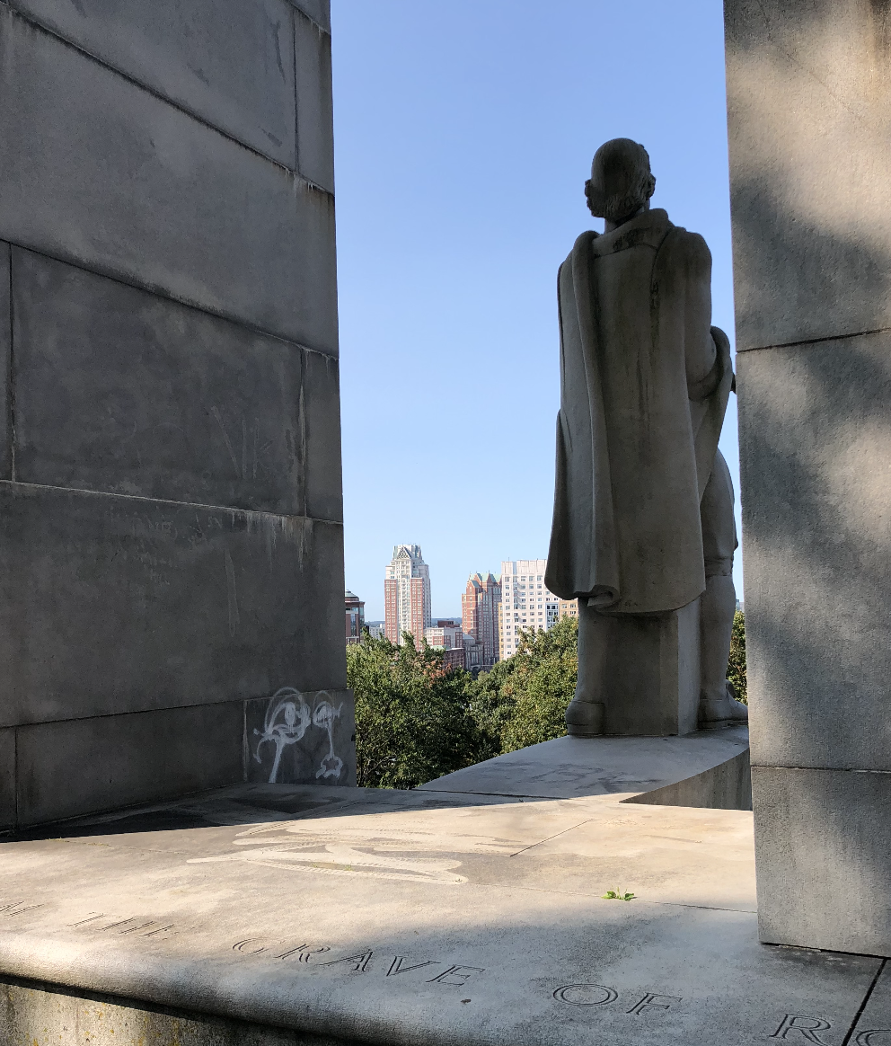 Prospect Park, owned and operated by the City of Providence, is home to the statue of Roger Williams and it was tagged recently.