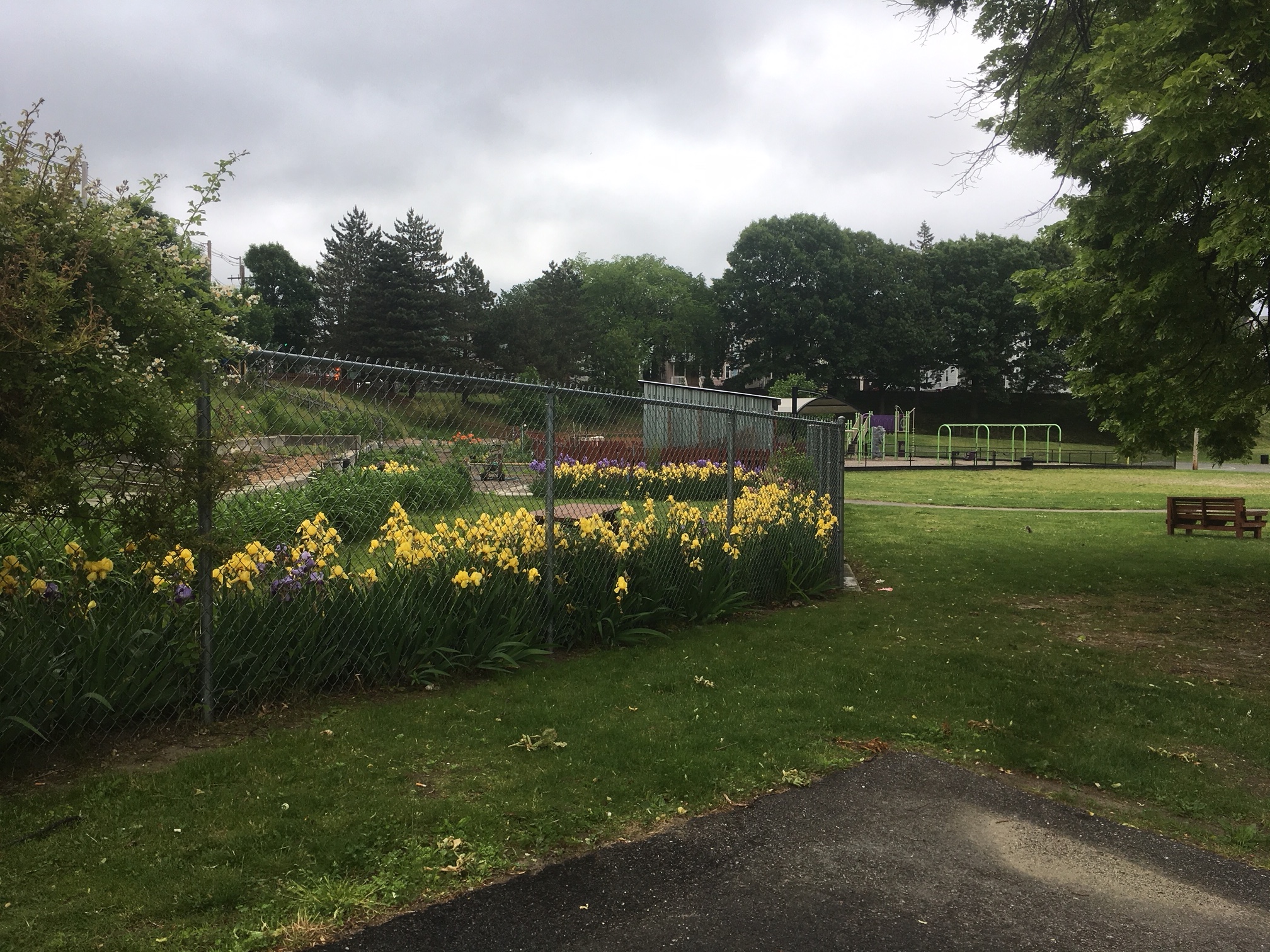 At the park, we also followed fly balls of young men practicing baseball, and watched a middle-aged man sink jump shots. Kids squealed from the playground, as shovels slid through compost in the community garden.