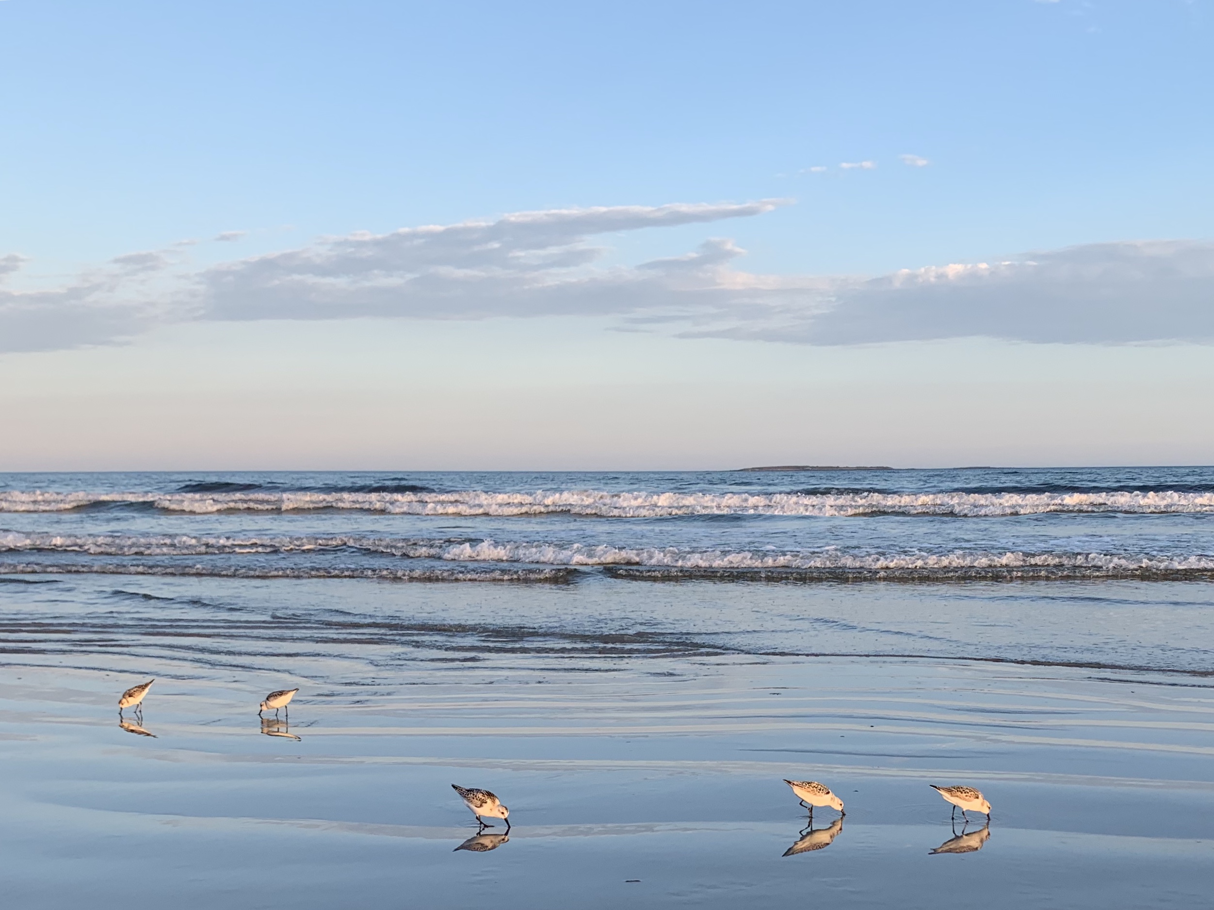 On Old Orchard Beach, we walked for several miles, surrounded at times on the mudflat by hundreds of Semipalmated Sandpipers—small shorebirds that literally shuffled around our feet.