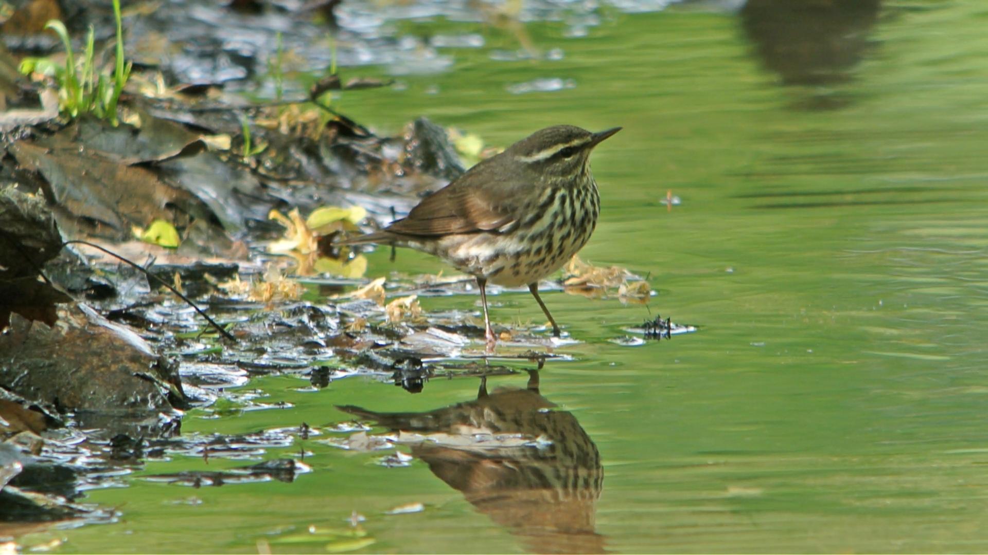 These unsettled creatures exchanged edgy metallic “chink” calls deep within the shoreline vegetation. The waterthrushes then flew at one another. This all appeared to me as a nesting habitat confrontation. But it occurred between an urban stretch of buildings and trash, and alongside the interstate.
