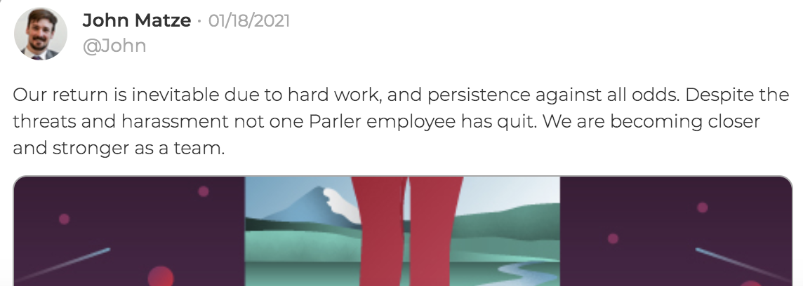 GET THE LATEST BREAKING NEWS HERE -- SIGN UP FOR GOLOCAL FREE DAILY EBLASTOn Monday, Parler’s website was reachable again, though only with a message from its chief executive, John Matze, saying he was working to restore functionality.