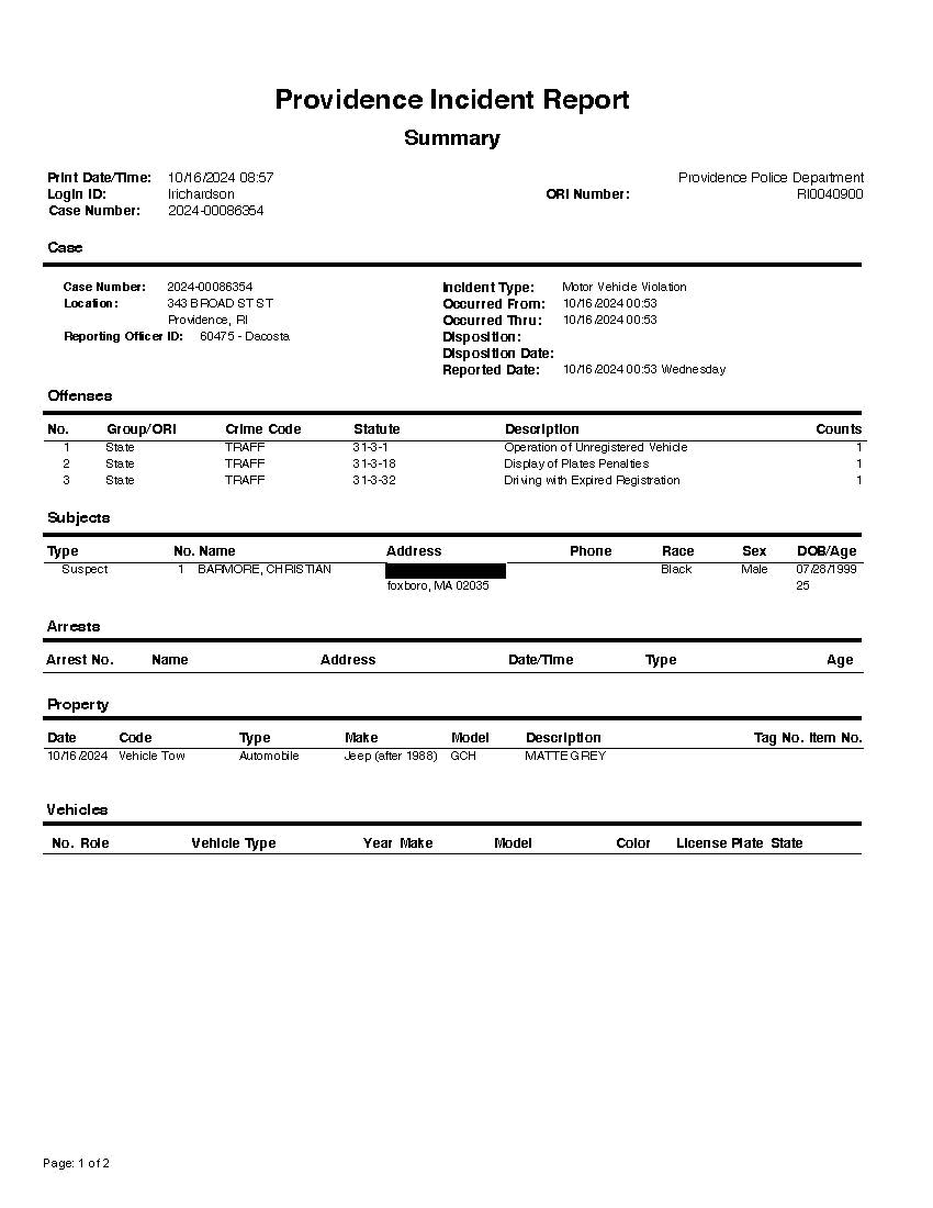 The Providence Police Department takes all concerns from the public very seriously and with the utmost professionalism. In this particular case, the vehicle in question was found to be unregistered during a routine traffic stop, which is a violation of the law. The officer acted in full compliance with department protocols and state regulations.