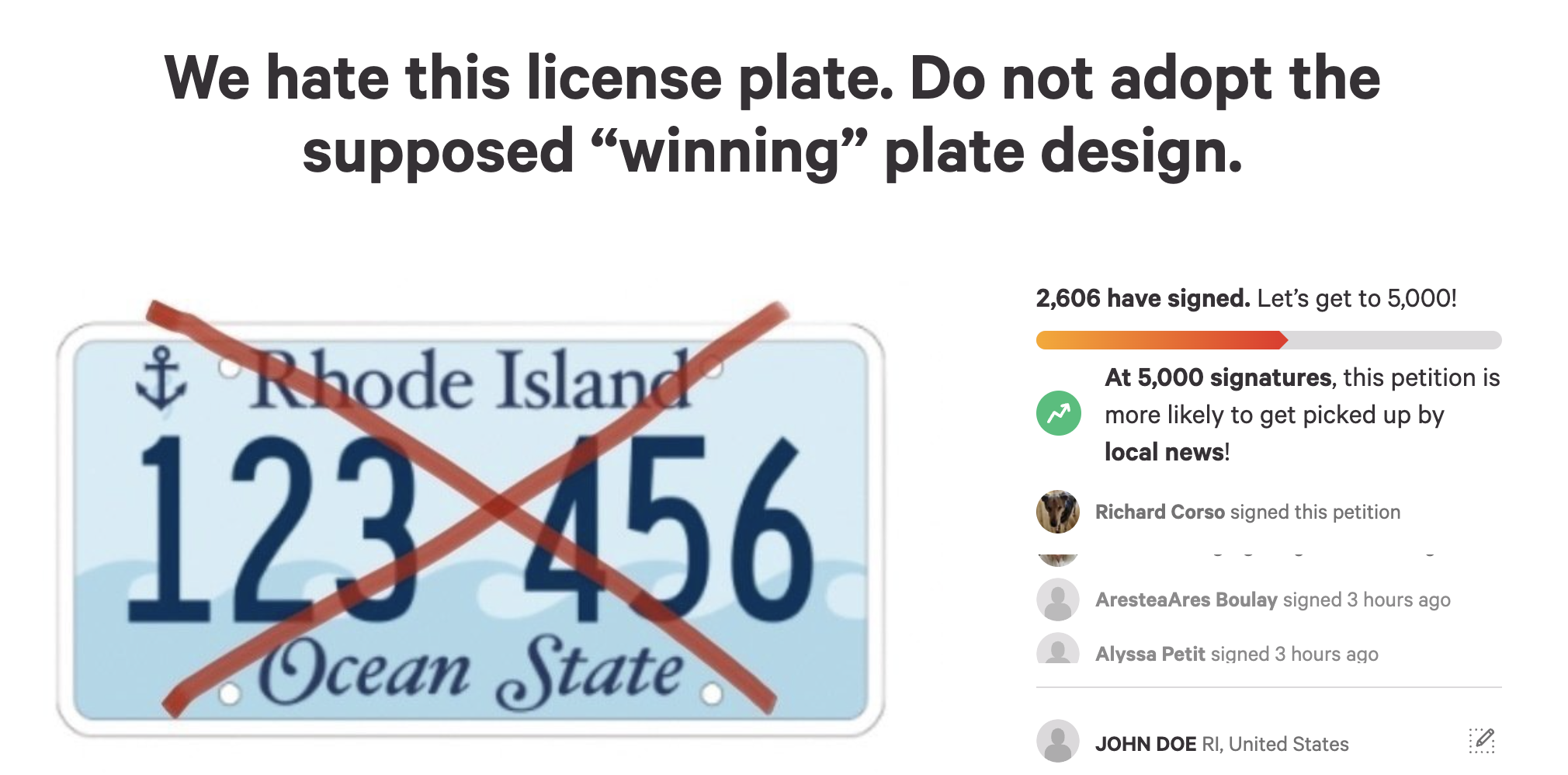 Petition Started in Opposition to Rhode Island’s New License Plate