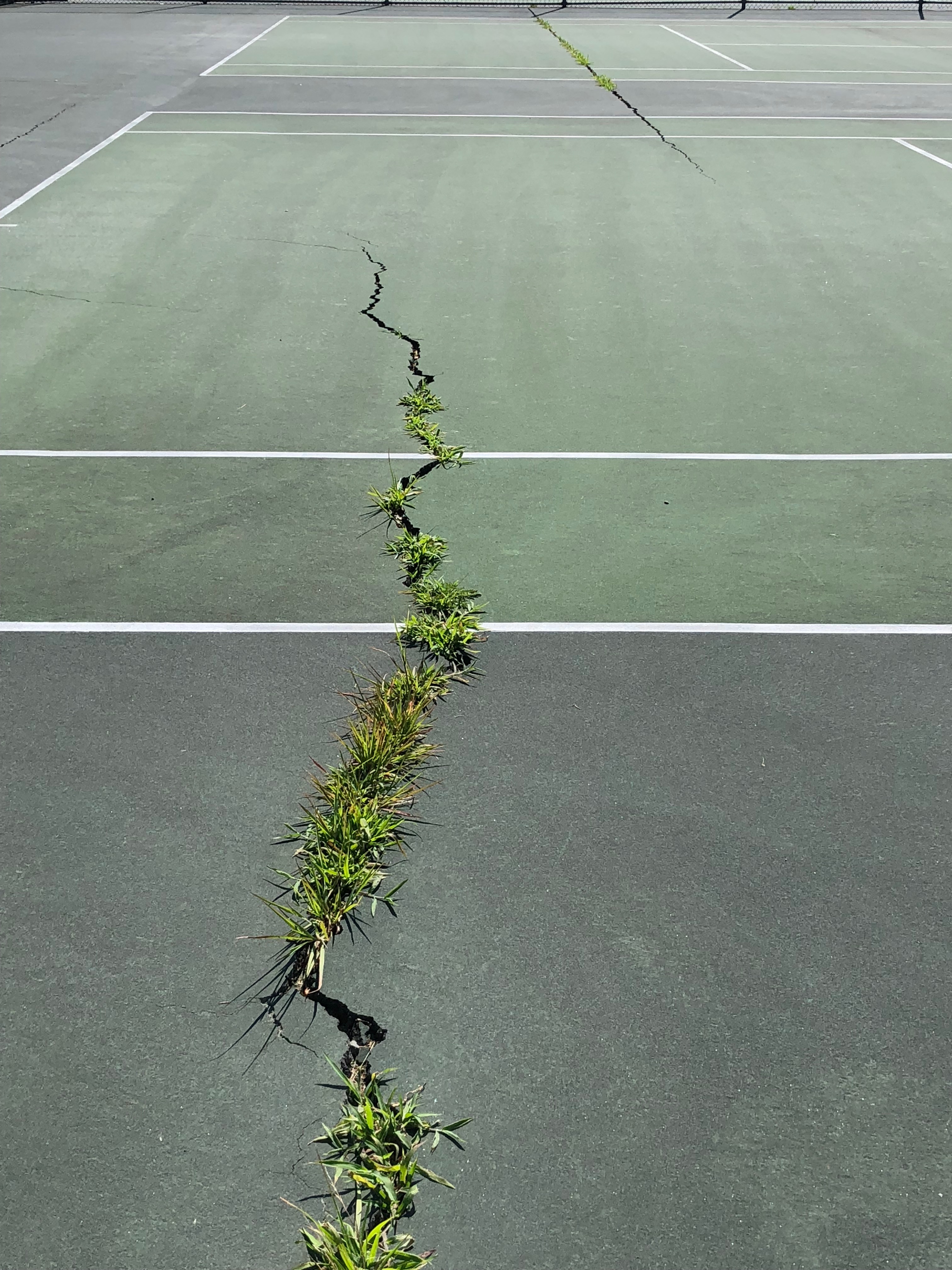 Now, in the spirit of Wimbledon, grass is growing through the cracks in the tennis courts. These are Providence East Side's nicest tennis courts.