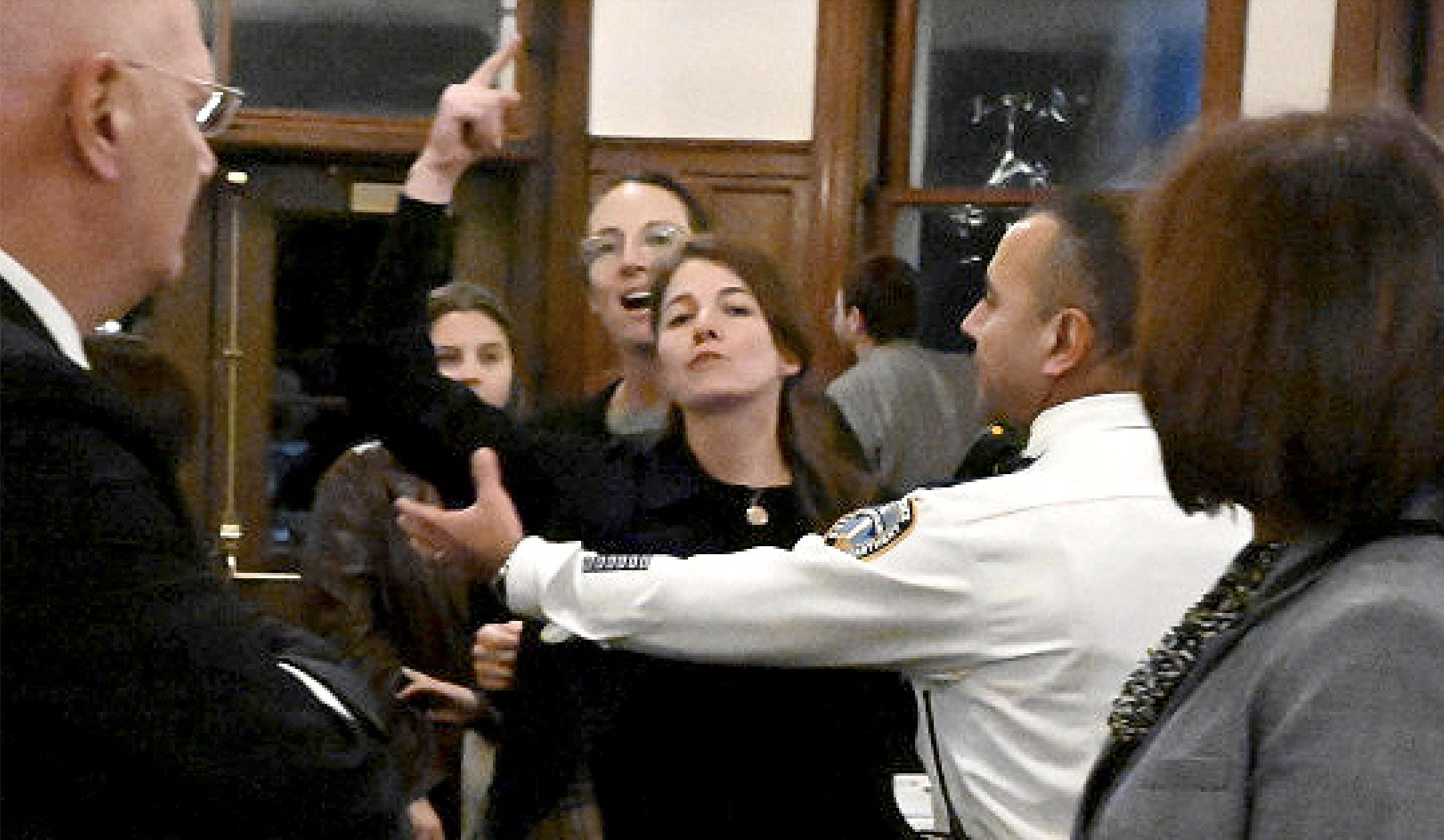 Photographer Richard McCaffrey was at the event and captured when the protestor entered the event and disrupted Whitehouse’s speech. Police then removed the protestors without incident.