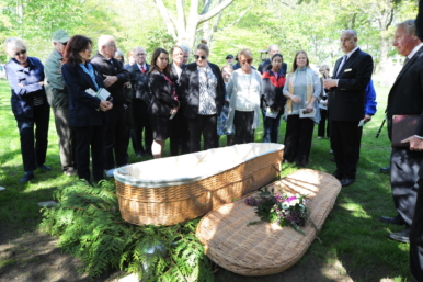 The featured speakers included Candace Currie from the Green Burial Council; The Reverend Doctor Anita Louise Schell, Rector, Emmanuel Church, Newport, Rhode Island; Tom Goddard, Chairperson of the Board of Directors, Swan Point Cemetery; and Anthony Hollingshead, President, Swan Point Cemetery.
