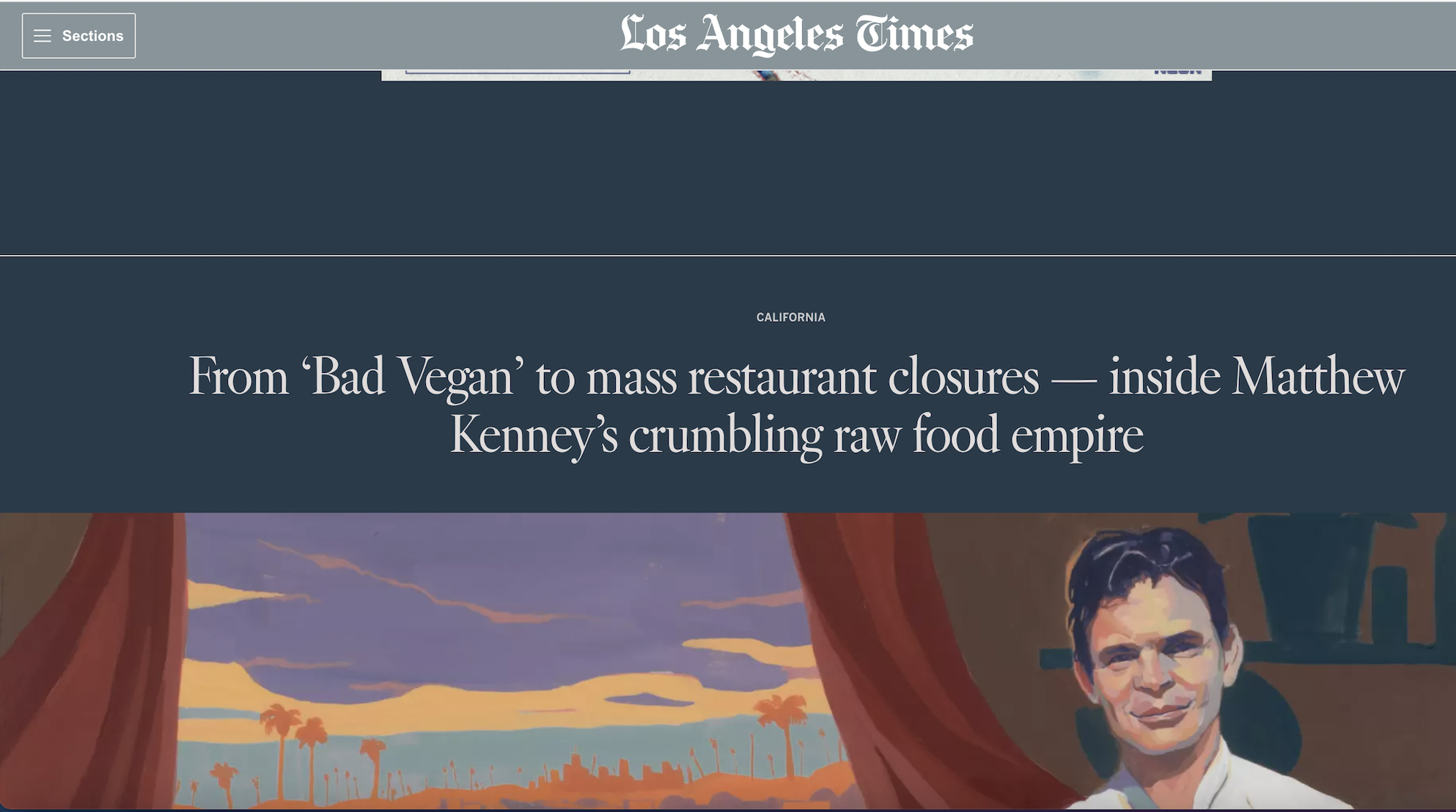 The New York Times article is titled, "Behind a Vegan Chef’s Holistic Empire, an Ugly Reality — Matthew Kenney, one of the most famous names in plant-based cuisine, has left a trail of burned investors, bounced paychecks and graphic text messages."
