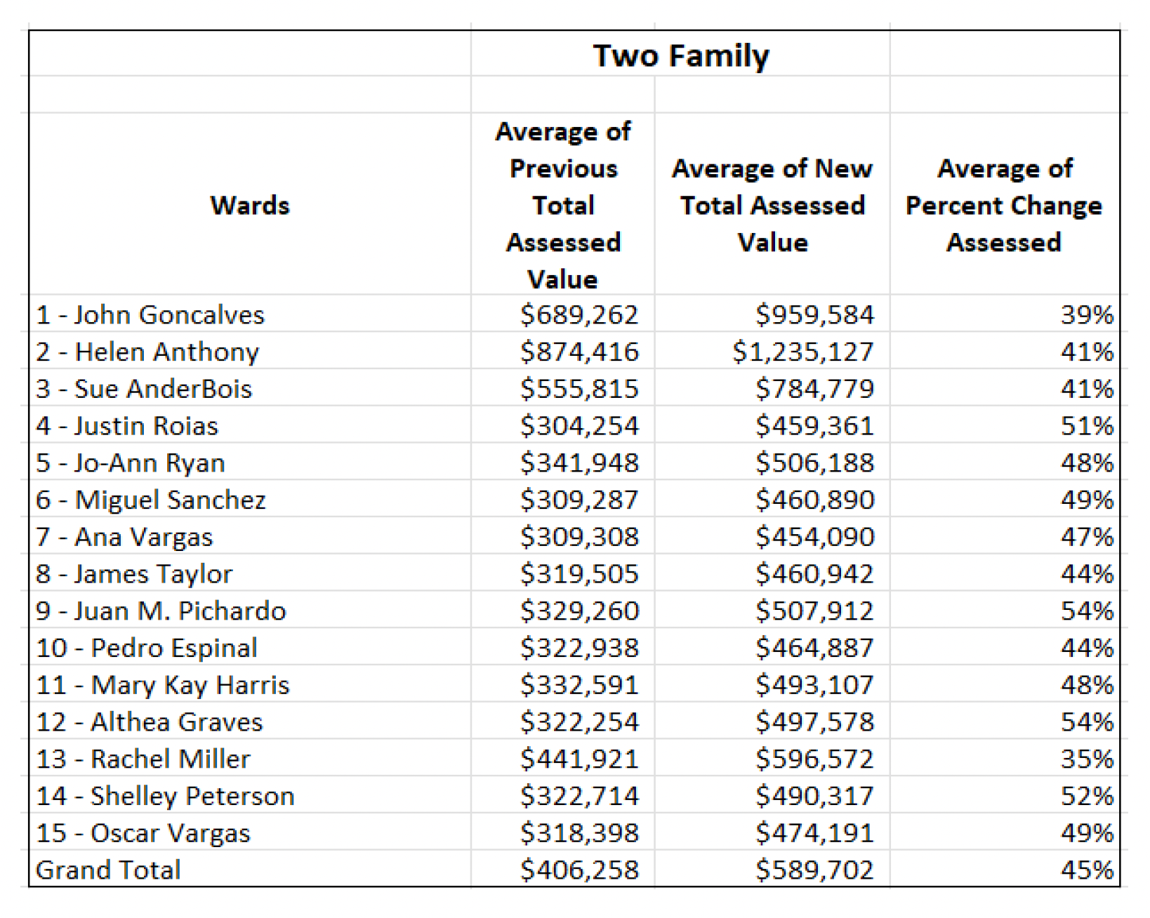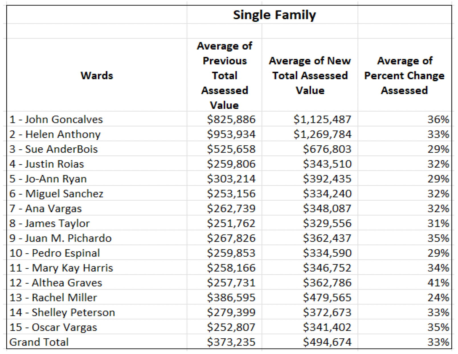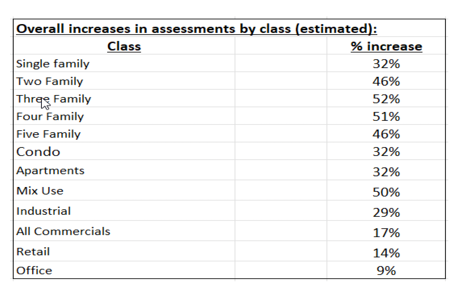For those who own single-family homes, the revaluation value of property has exploded. As a class, single-family homes have increased by ward from 29% to 41%.
