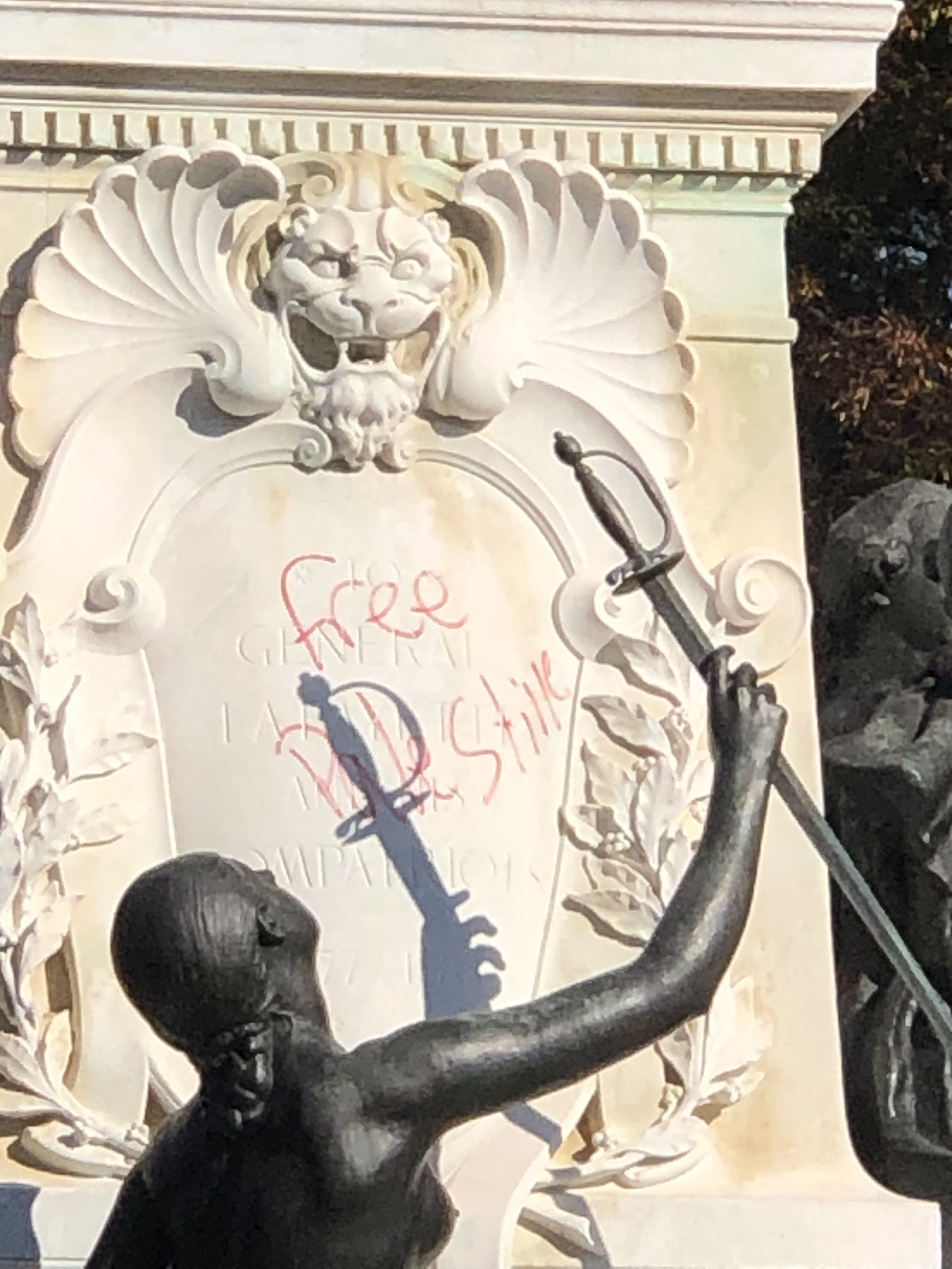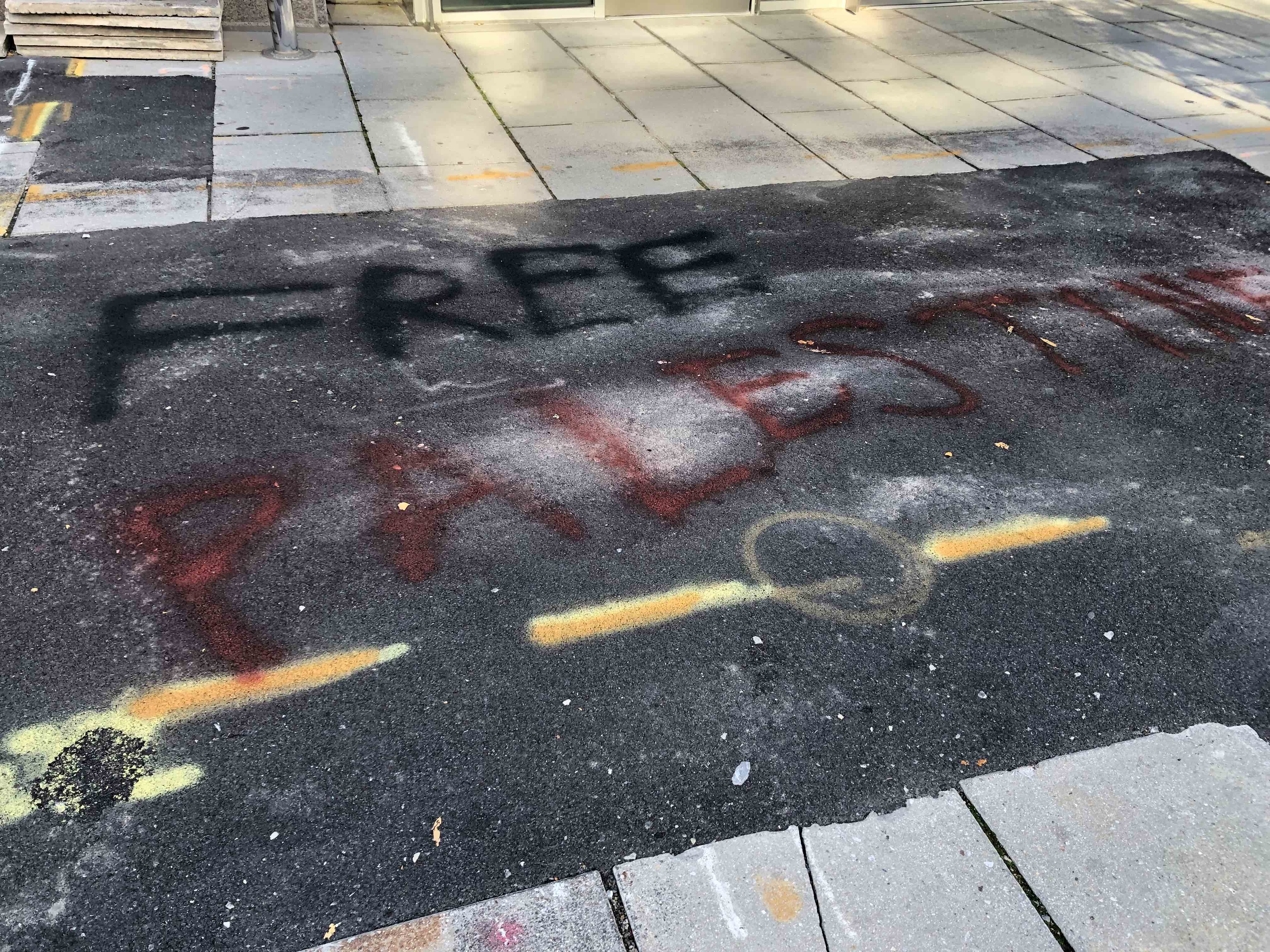 The rally left the area around the White House covered with graffiti -- anti-President Joe Biden and "free Palestine" messages can be seen on statues throughout the area.