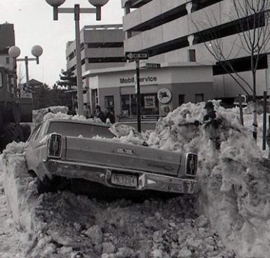 Well, maybe not as bad as this photo from the '78 blizzard, but close in spots. One bright point is that many businesses are closed tomorrow, so you might just be able to find a spot - but you might need snowshoes to get out of your car.