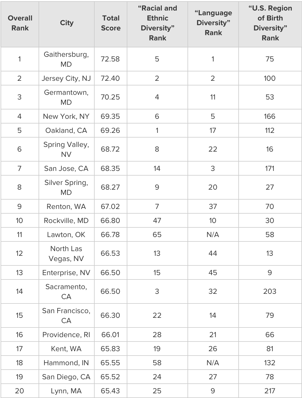 WalletHub analysts compared 313 of the most populated U.S. cities across three key metrics, including racial and ethnic diversity, language diversity and U.S. region of birth diversity.