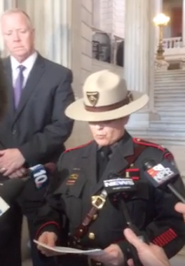 Steve Pare, Providence Public Safety Commissioner; Rhode Island State Police Colonel Ann Assumpico; and Providence Police Chief Hugh Clements held a press conference on the highway near the site of the shooting.