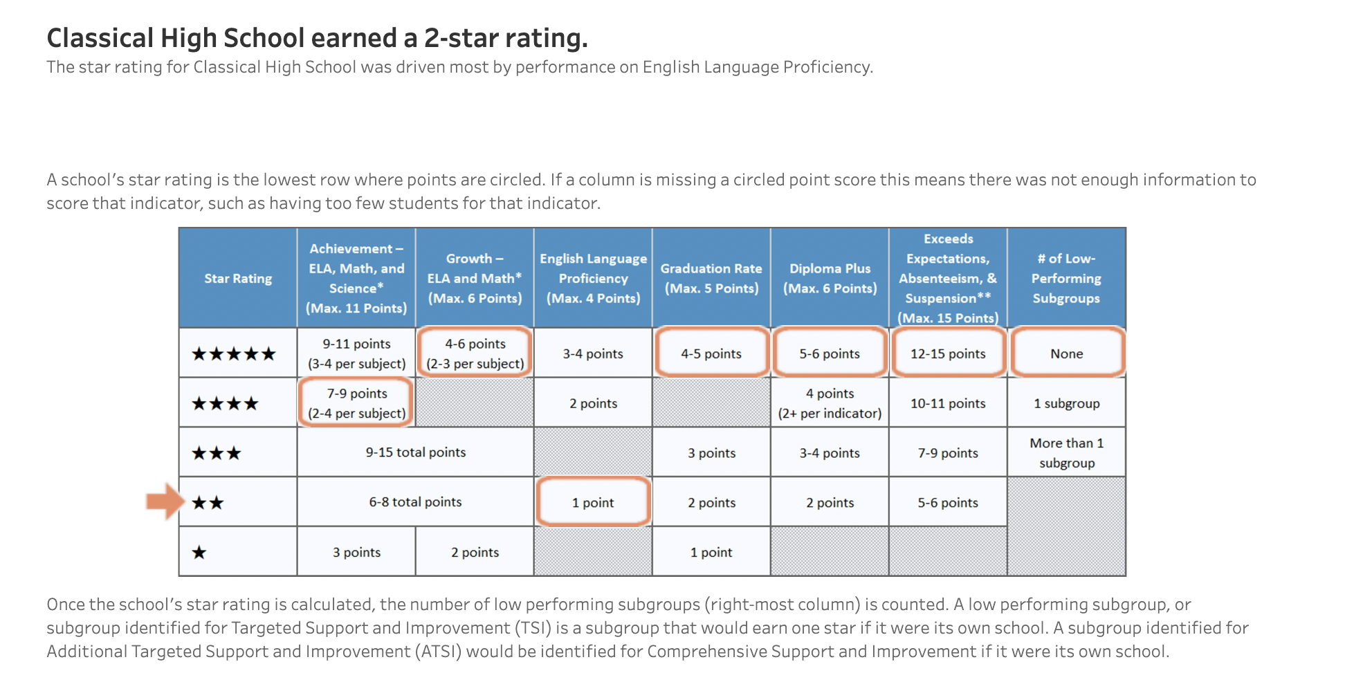 In the Monday assessment release, Classical has fallen to a 2-star school.