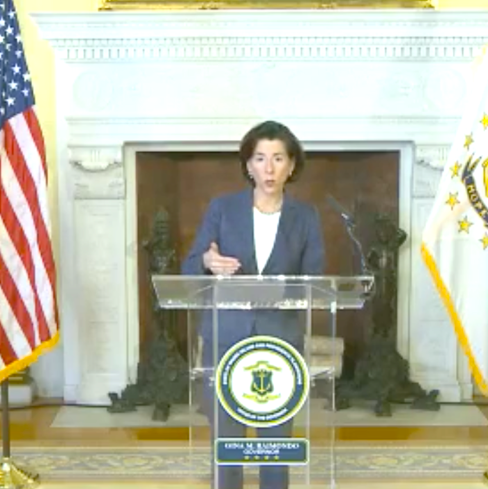 EDITOR'S NOTE: Raimondo does not allow Rhode Islanders to hear reporters' questions. Nearly all governors across the country and the White House allow reporters to ask questions directly and for the public to hear the questions and the responses.
