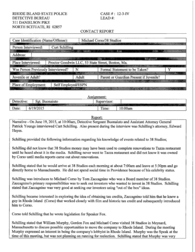READ Curt Schilling's RI State Police Interview Friday, March 03, 2017 GoLocalProv News Team READ Curt Schilling's RI State Police Interview 38 Studios Founder Curt SchillingREAD Curt Schilling's RI State Police Interview regarding 38 Studios. RISP Interview: Curt Schilling Enjoy this post? Share it with others.