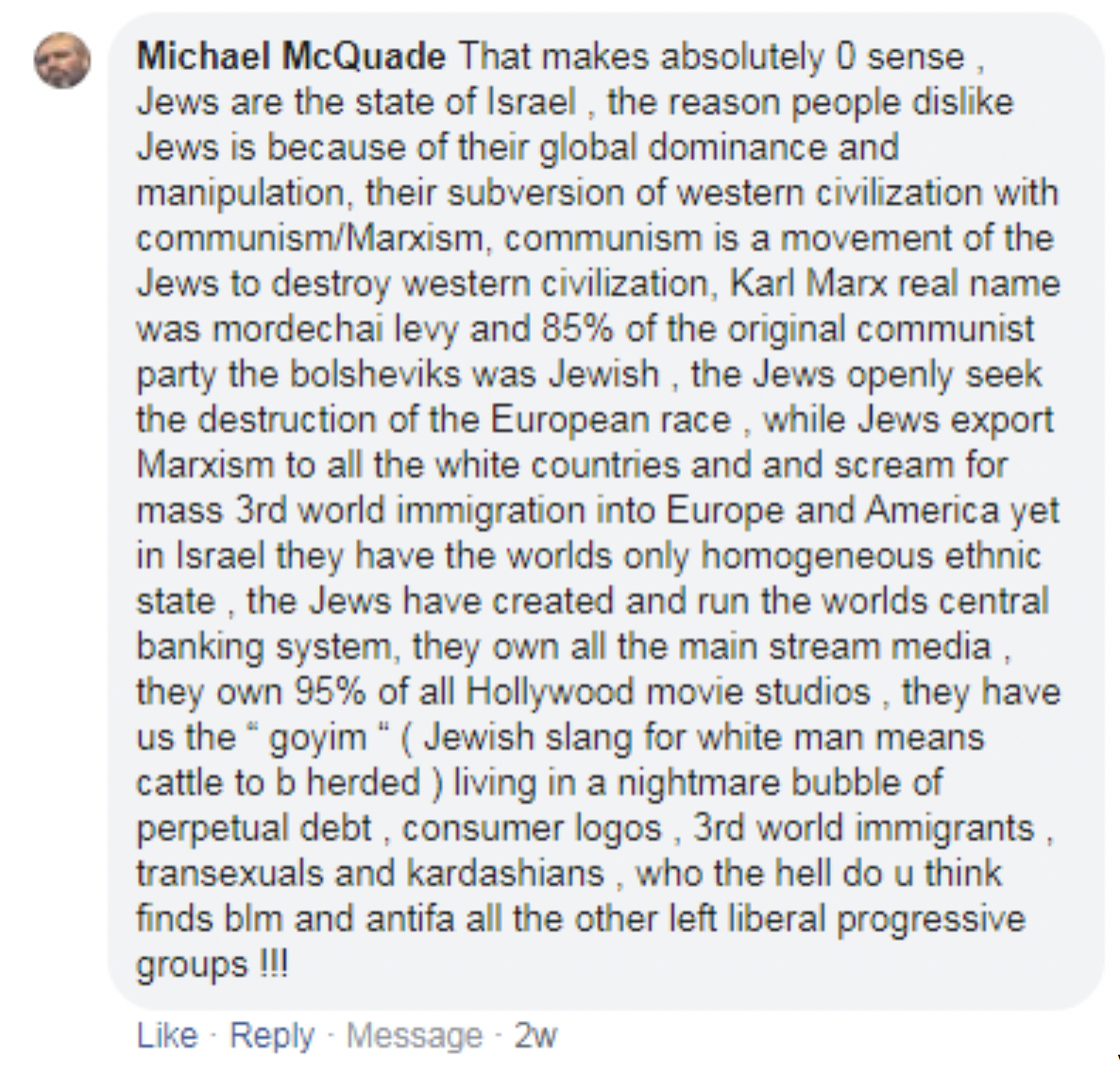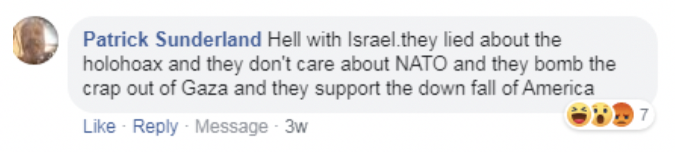 According to Greene, negative comments included Holocaust denial, accusations of dual loyalty and treason, genocide, global domination, mass immigration, and responsibility for Marxism, among others. “Basically the Jews and Israel are being held responsible for every evil in the world. That has always been the case.”