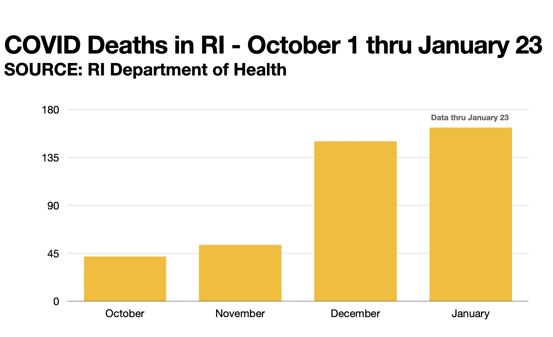 RI COVID Cases Begin to Decline, Deaths Continue at Highest Pace in 11 Months