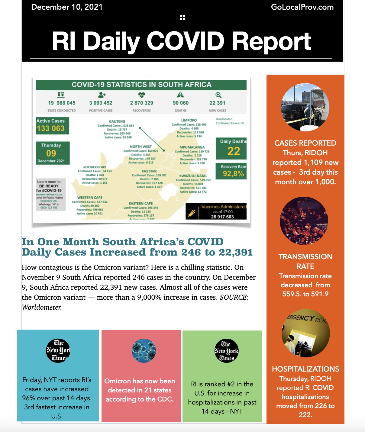 RI Daily COVID Update Friday - South Africa’s Daily Cases Increased From 246 to 22,391 in a Month