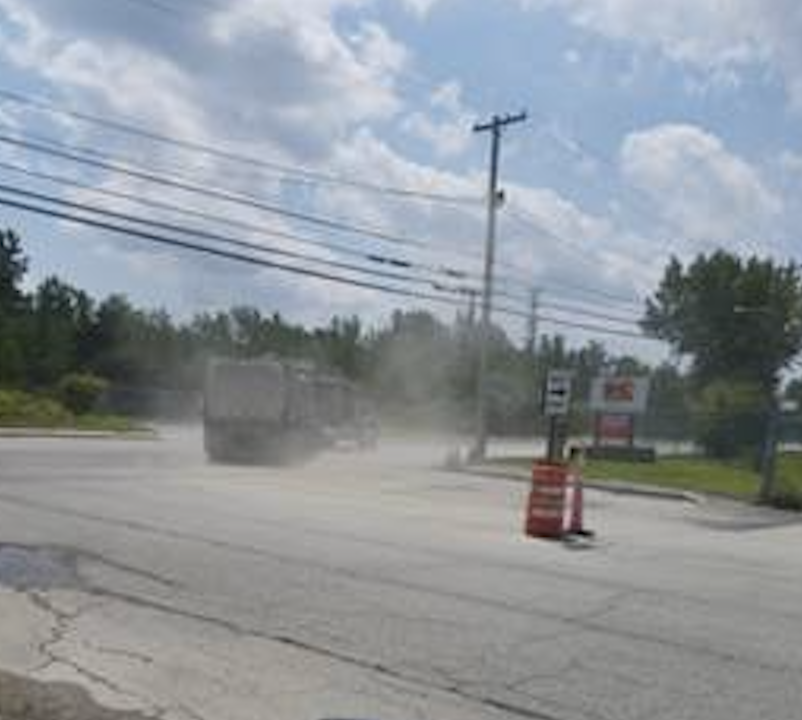 Specifically, dust was observed traveling onto Phenix Avenue as trucks exited the property on July 31 and August 1, and although a water truck was in use, it was ineffective in preventing dust from migrating beyond the property.