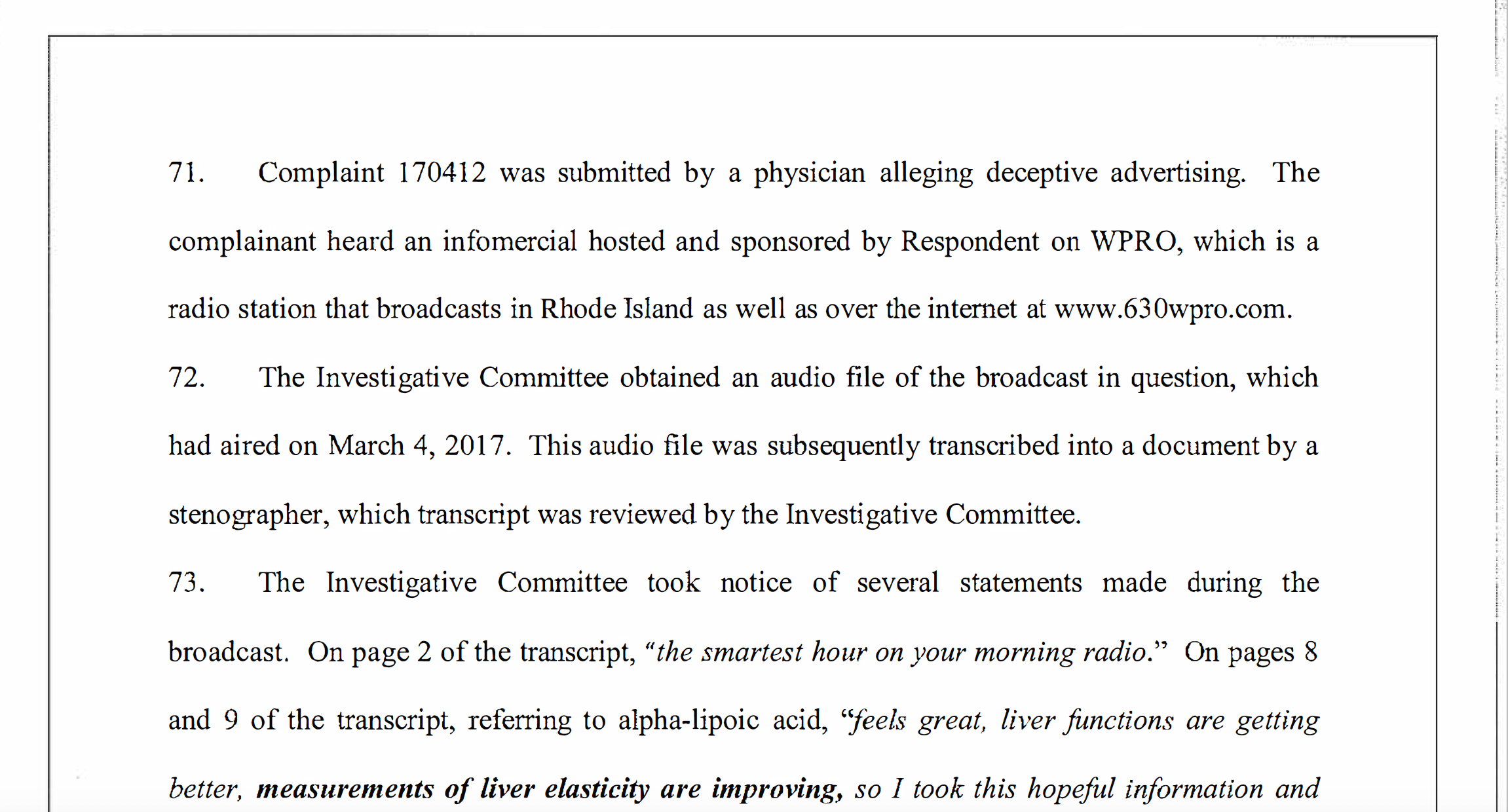 The most recent disciplinary action, according to the Department of Health, is tied to false claims he made on WPRO and on the internet, unprofessional conduct, and failure to meet minimum standards.