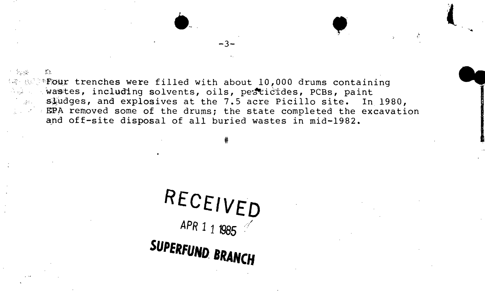 It was Rhode Island's own Love Canal. The Picillo site had more than 10,000 drums of toxic waste. The site became a Superfund site and the cost of cleaning up the property was in the tens of millions of dollars.
