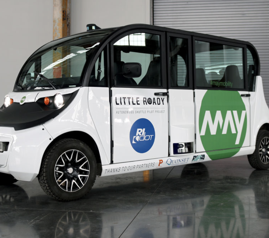 The Little Roady shuttles are provided by May Mobility, Inc., which entered into a public-private partnership with RIDOT last fall.