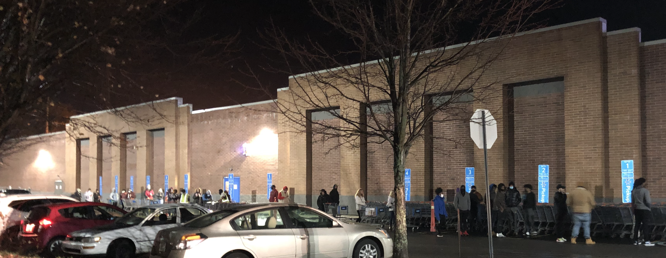 With a handful of Walmart staffers outside the building, maybe 100 deal-seekers were queued up at the front door and down the side of the big-box retailer.