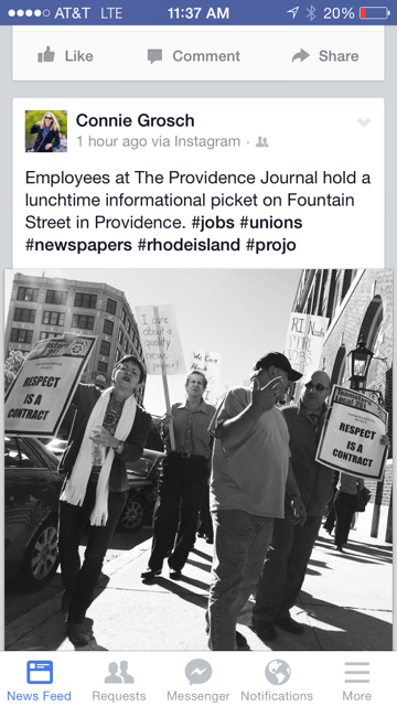 A picture of Monday's picket line, which prominently featured Providence Journal Sports Columnist Billy Reynolds, was posted by former Providence Journal photographer Connie Grosch.