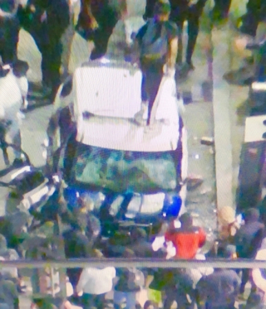 A crowd of approximately 200 vandalized a Boston Police SUV.