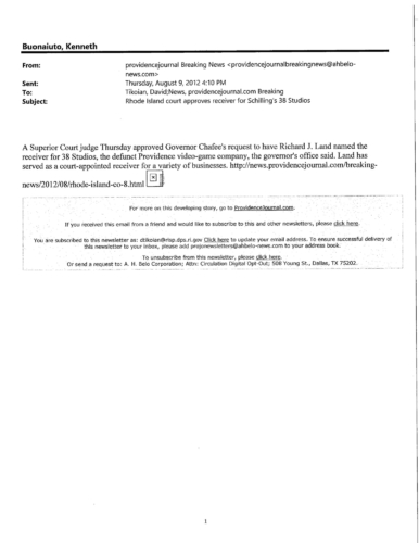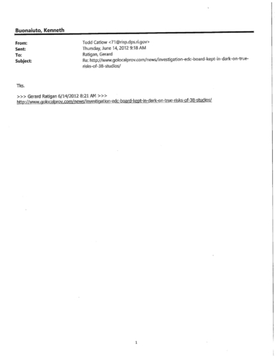 Top Attorney Wistow Urged Criminal Charges Be Levied on 38 Studios, But AG and RISP Did Not Pursue