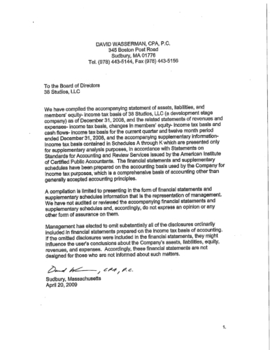 In an email from then-Major Todd Catlow to then-Colonel O’Donnell, Catlow wrote, “Attorney Wistow believes 38 Studios obtained the loan financing from the state under false pretenses due to financial projections in the closing documents that are based on the distribution of $75 million in gross rather than the $57 million in net proceeds that were actually disbursed. At the time of the projections were prepared 38 studios expected the gross amount, by the time the loan closed 38 Studios knew they would receive the net amount. The projections never changed.”