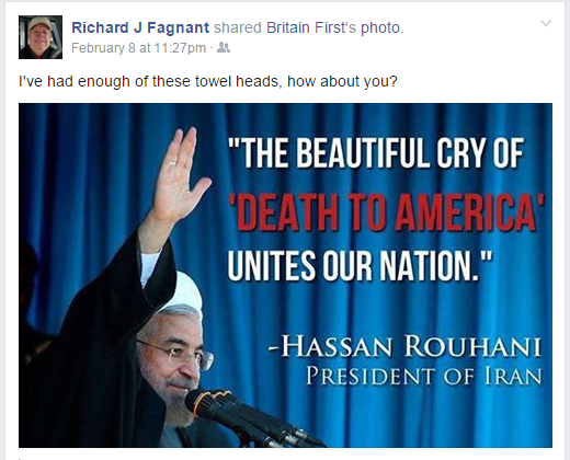 Fisher was referring to a post where Fagnant posted a picture of Iran's president calling him a towel head.