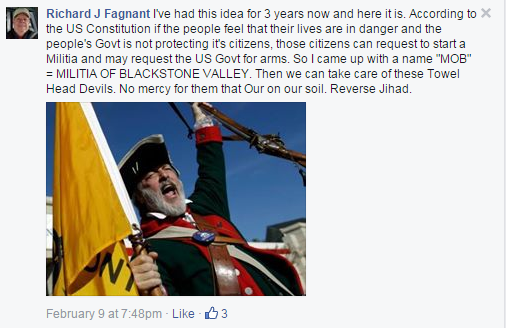 "I think the standard has to change when you're a public official," said Fisher. "I'm on the radio, I make my living on the First Amendment, and I understand the ramifications. But as an elected official, if you're posting an anti-Islamic post, how can you be impartial? What if the Muslim community came to the zoning board and said they wanted to build a mosque in Woonsocket? He's posted online calling for reverse jihad."