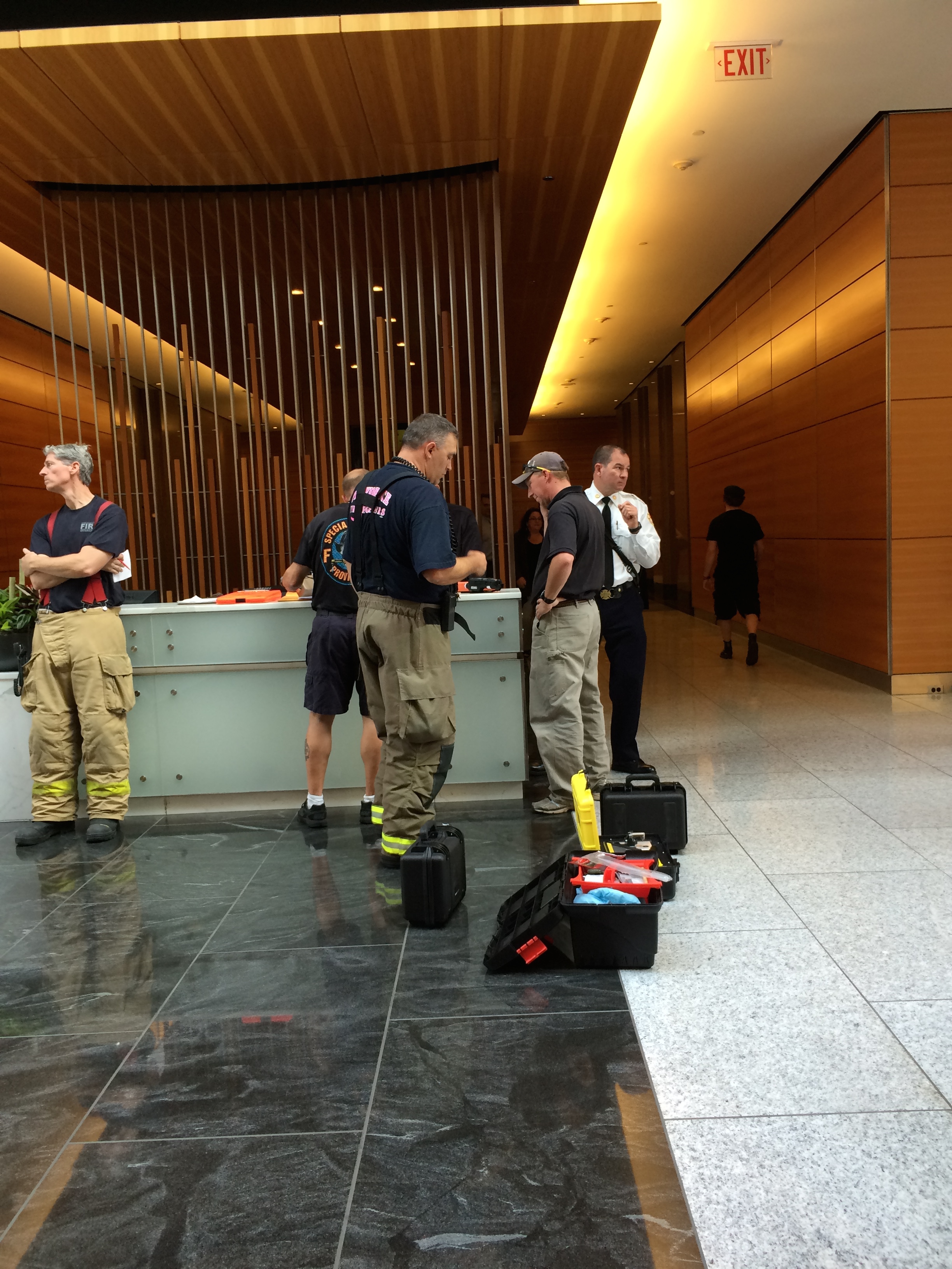 All floors except the first were evacuated following the incident, and police have taken a female suspect into custody. Her identity has not yet been released by police.