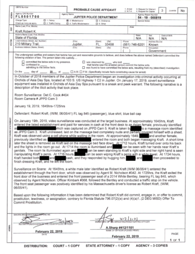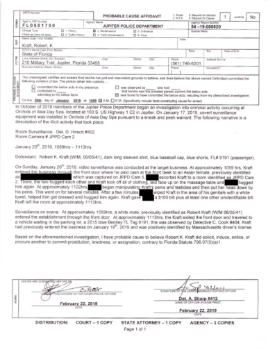 At Orchids, according to the Jupiter police, Kraft paid cash to the spa’s co-owner, Lei Wang, who goes by Lulu, and received a hand job from her and another worker, later identified as Shen Mingbi. After Kraft ejaculated, Mingbi wiped his penis with a white towel. Then she and Lulu helped him get dressed."
