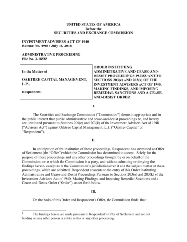 GET THE LATEST BREAKING NEWS HERE -- SIGN UP FOR GOLOCAL FREE DAILY EBLASTOaktree has admitted no guilt to the charges as a part of the agreement with the U.S. Security and Exchange Commission, which has fined Oaktree - who paid a civil penalty.
