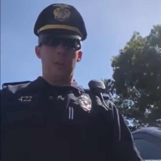"I can't take your word for it -- I'm going to ask you to ID yourself," says the officer.