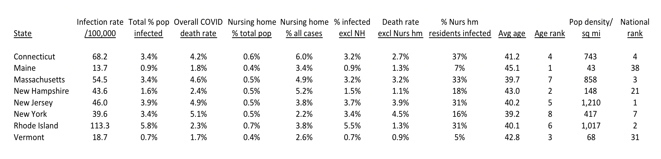Vermont and Maine continue to have the lowest infection rates in the country as well as the lowest infection rates in nursing homes. They are examples of best practices, with Rhode Island one of the worst.