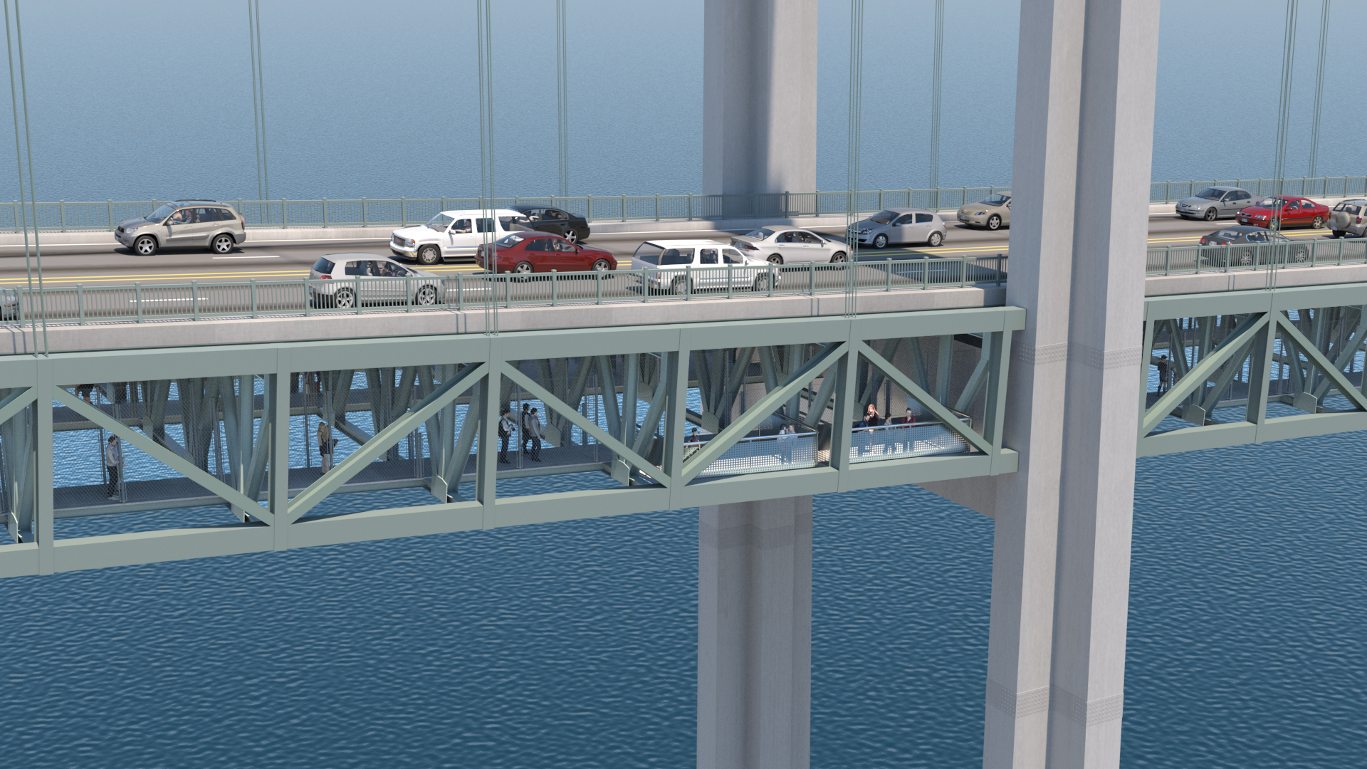 There would be a fee to go up, revenue from which could be applied to bridge maintenance. Given the dramatic vistas, I think that the deck would draw many happy people, albeit mostly in the warm weather.