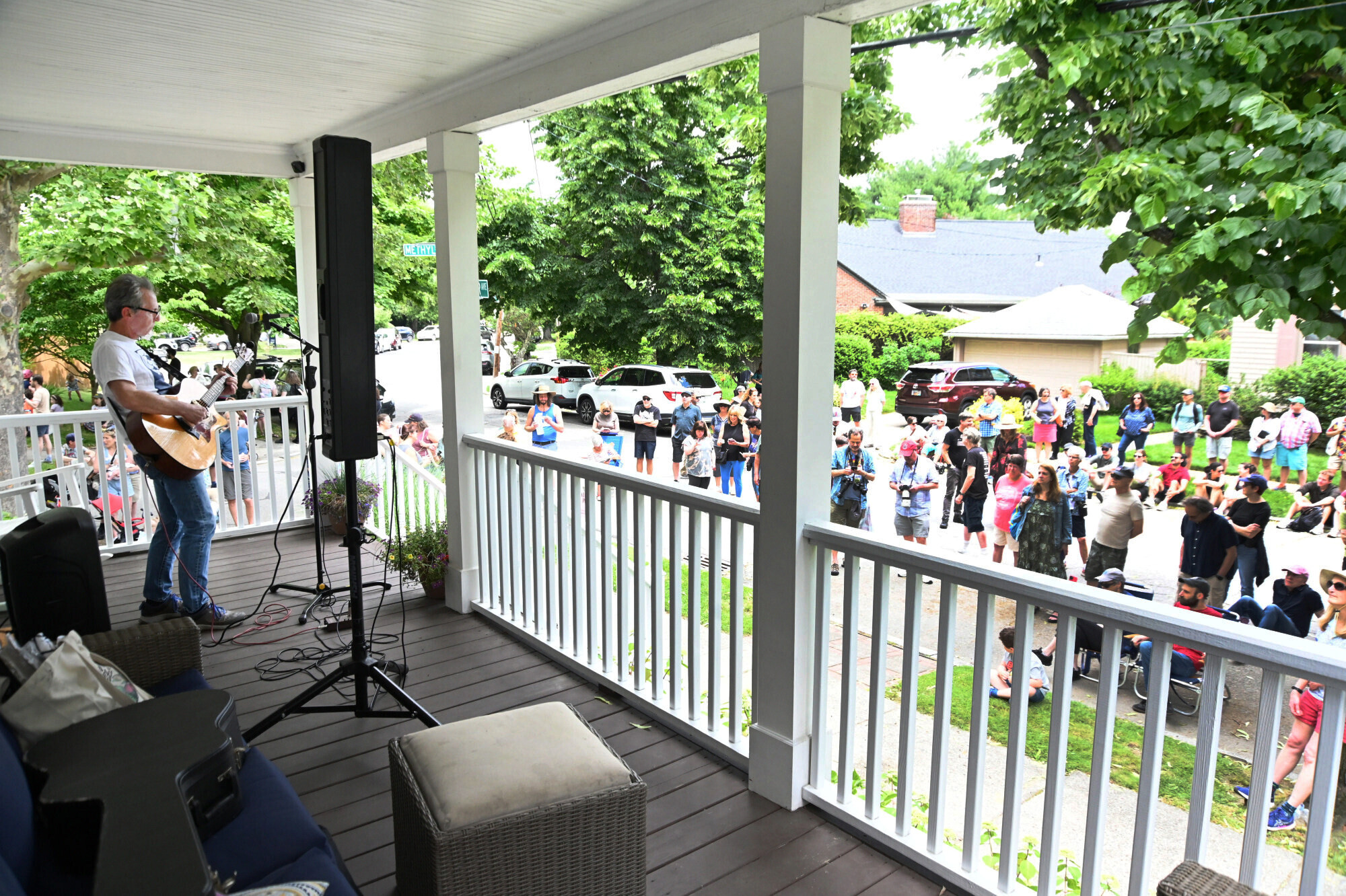 There’s a growing number of neighborhood events called Porchfests, including in New England, in which live music is played from porches. I suppose that’s a sweet project to try to bring people together, though some of us prefer things a bit quieter.