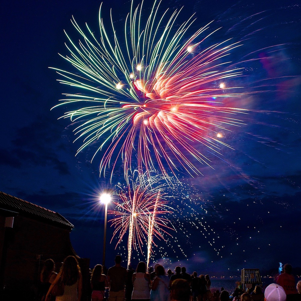 Fireworks at a pier on the Fourth of July