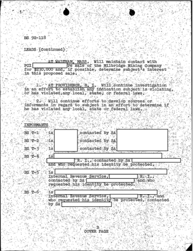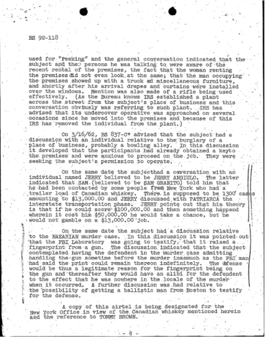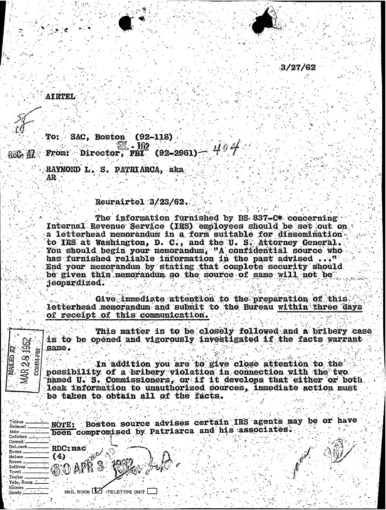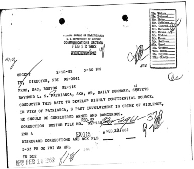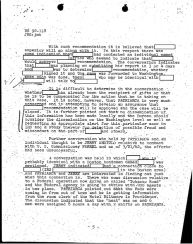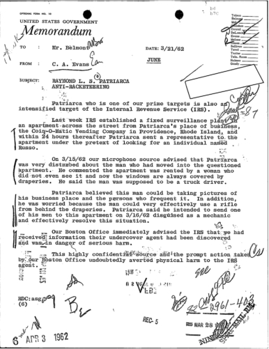 Cheat Sheet 19, FBI Files: FBI Worried Patriarca is Going to Kill IRS Agent