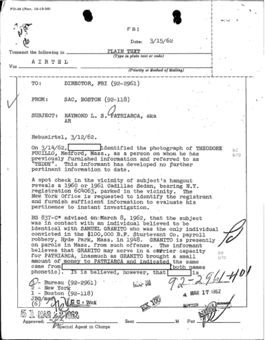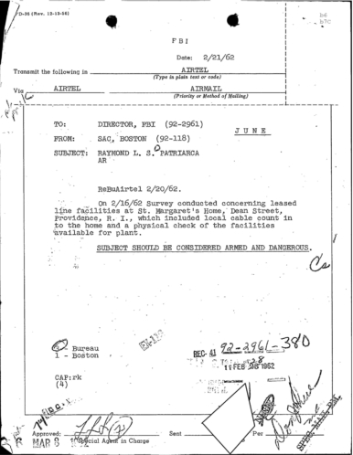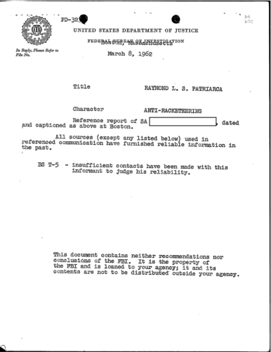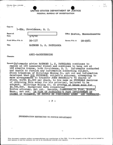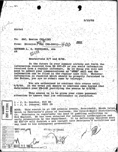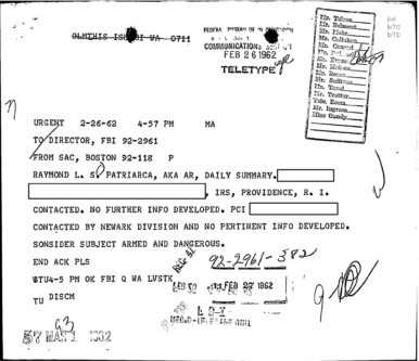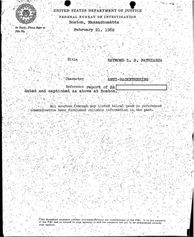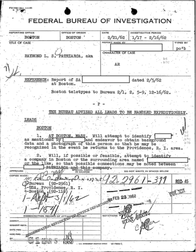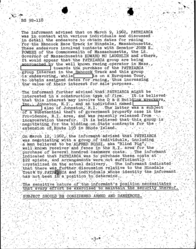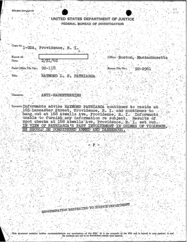 FBI Files - The Patriarca Papers - Entry 19