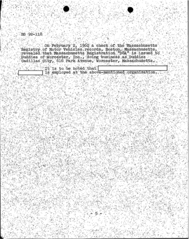 Associates of Patriarca drive a car tied to Duddies in Worcester, according to an FBI memo — this is another in a series of connections between Patriarca and Duddie.