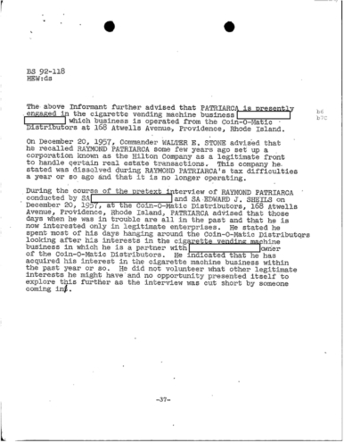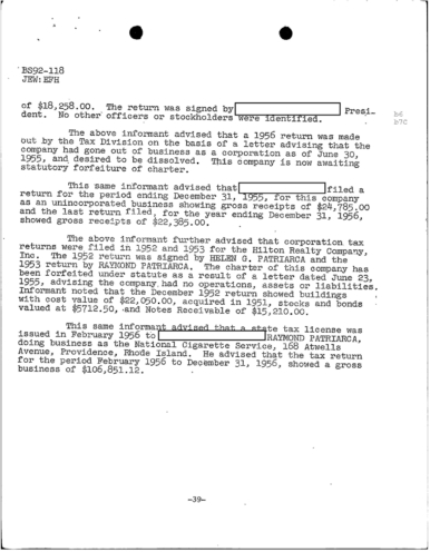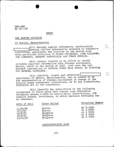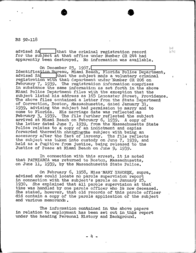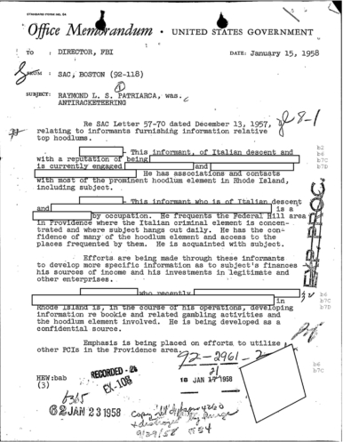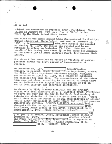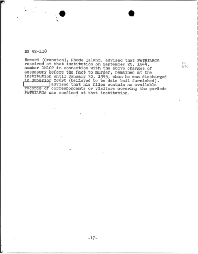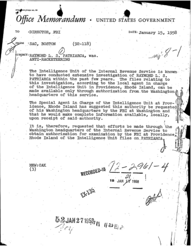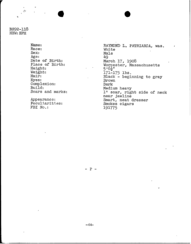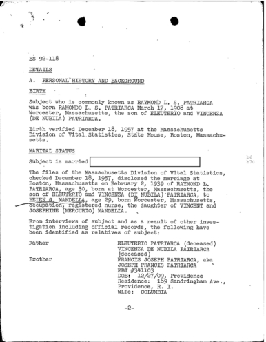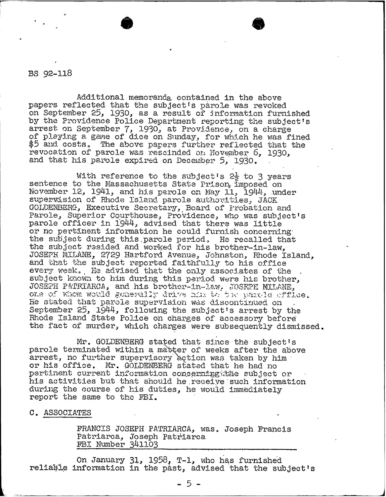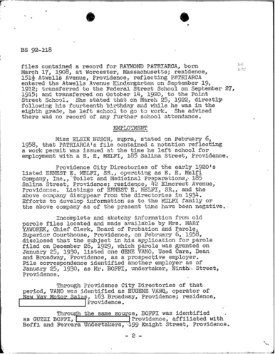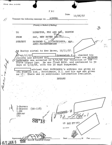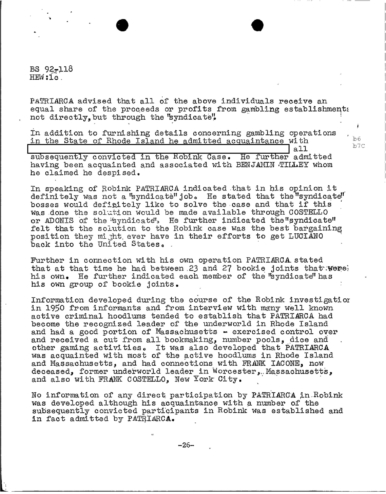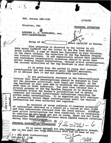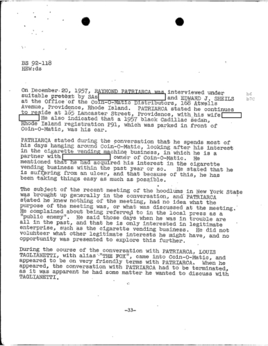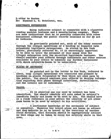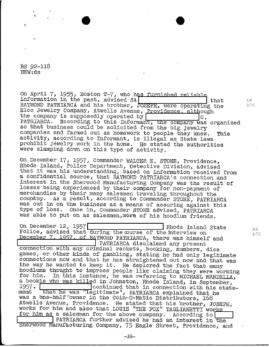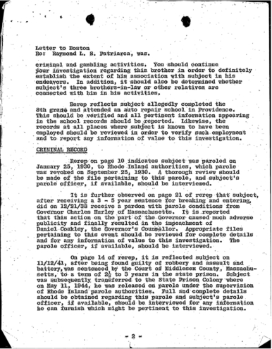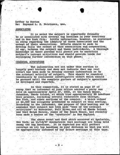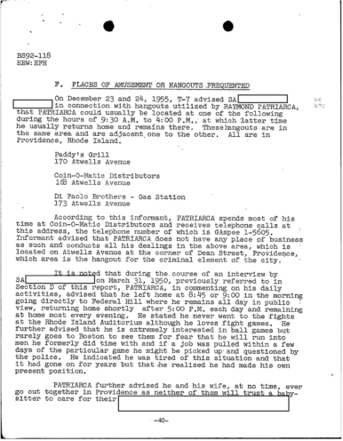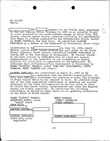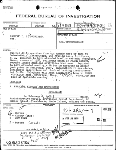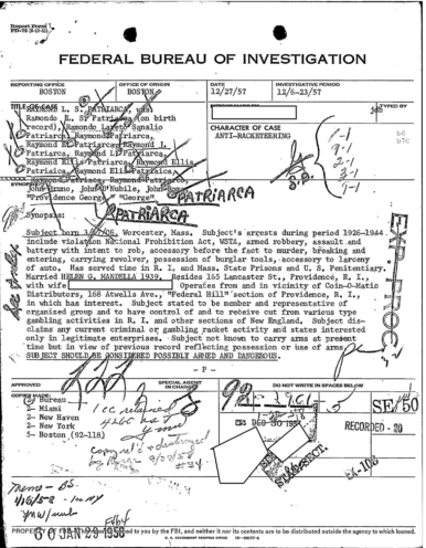 If you want to get an early overview of the Patriarca family tree as deciphered by the FBI - take a look at Fed’s description of the Patriarca family.