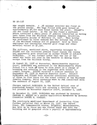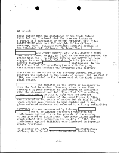 Maybe one of the most infamous alleged (and forgotten) episode in Patriarca’s life of crime was his involvement with an Easter jail break that led to the death of two correctional department workers. The crime led to Patriarca beyond indicted in 1944 for "accessory before the fact."