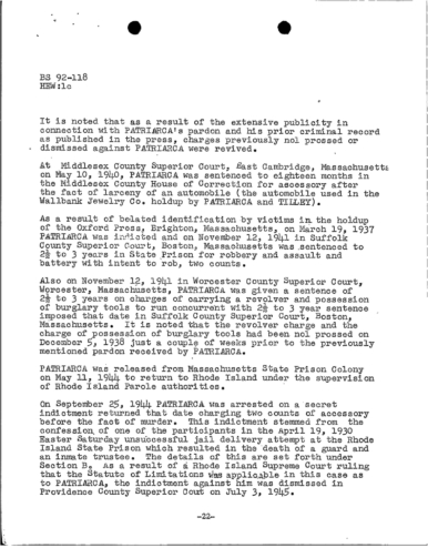 Make no mistake about it, the files are layered with information about a time where the scope and reach of the Patriarca crime family permeated nearly every aspect of life in New England - from the Easter jail break to expansion to Maine to his relationship with the Mollicone family.