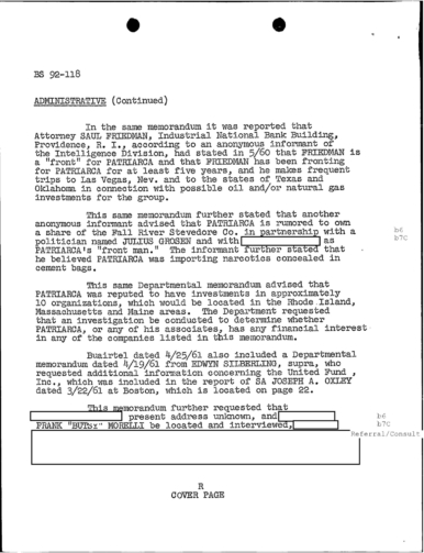 Cheat Sheet 4, FBI Files Unveils the Business Ties of Patriarca’s Lawyers