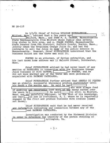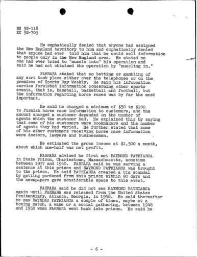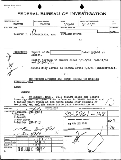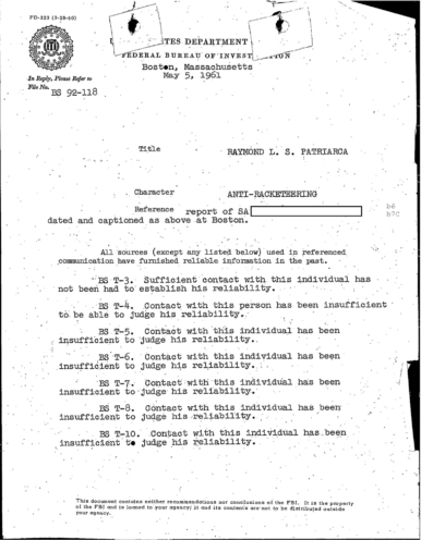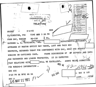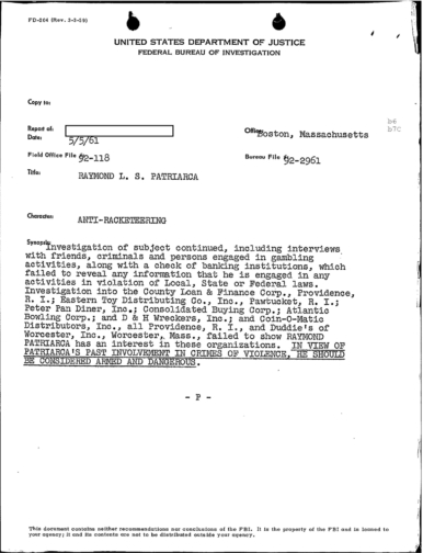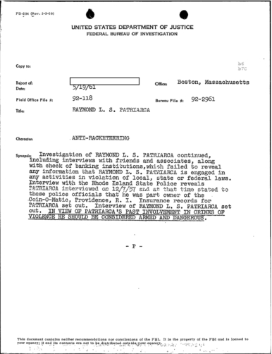 Farrara and Patriarca’s history goes back to when they both were in prison in Charlestown, MA between 1937 and 1940.