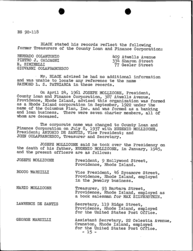 The FBI look at the Country Loan and Finance Corp - the bank founded by Joseph Mollicone (the father of Joe Mollicone, Jr. who was convicted of being one of perpetrators that caused the collapse of the Rhode Island Credit Unions in 1990).